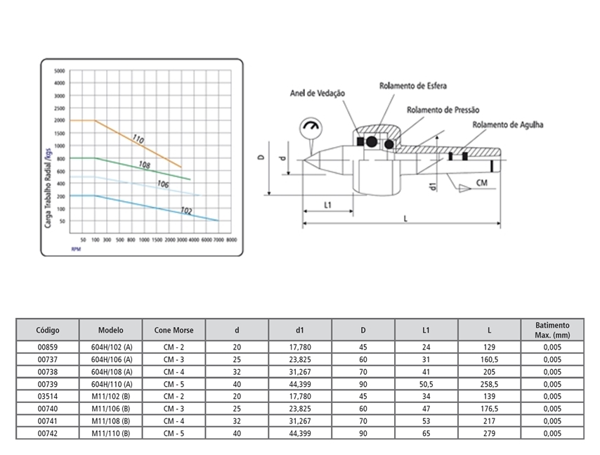 Ponto Rotativo montado com rolamento de esferas de pressão e agulha.